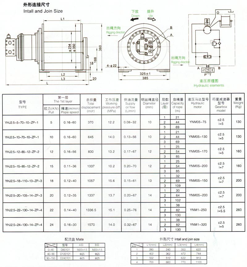 丫HJ6-120-315-30-ZPH表示:行星减速器模数为6,钢丝绳的第一层拉力为 120KN,卷筒绳量为315m,钢丝绳直径030mm,带制动器及单向平衡阀,压力等级为20Mpa的液压绞车。