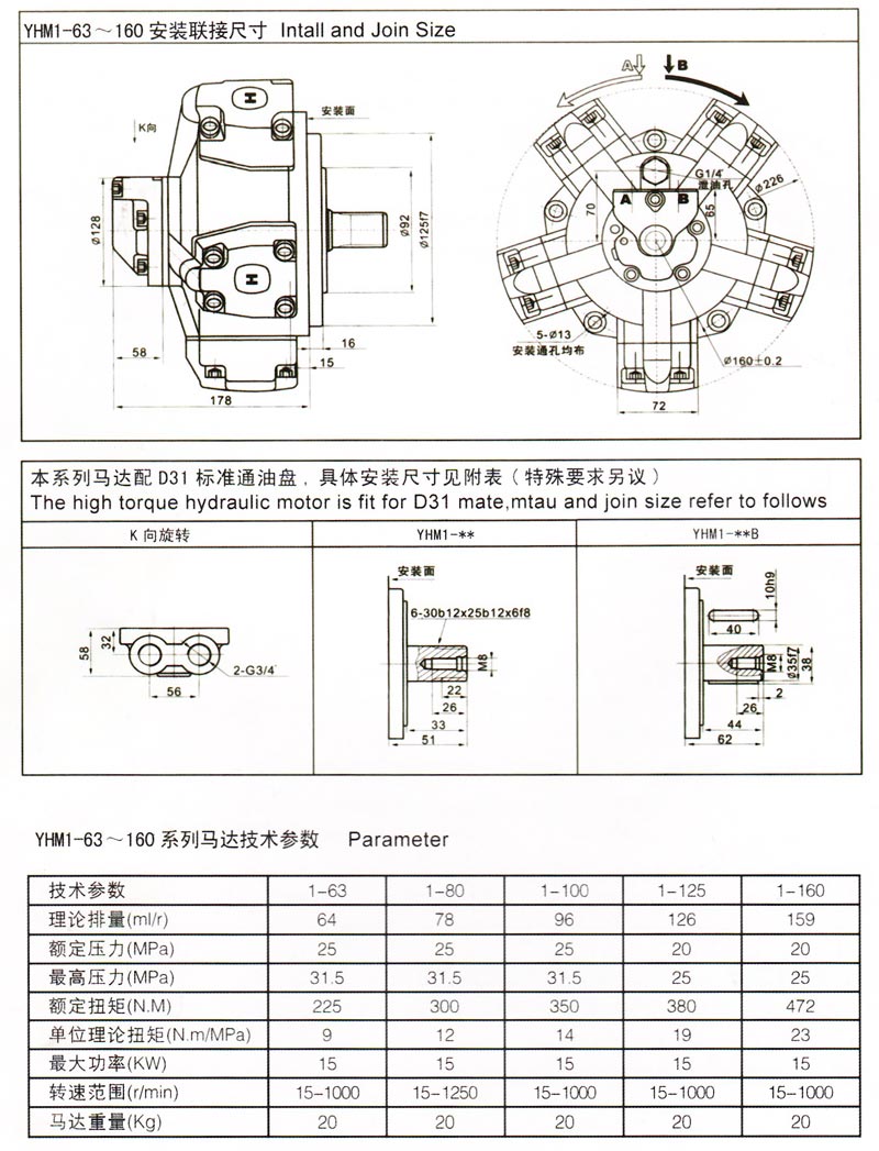 本公司生产的YHM系列低速大扭矩液压马达采用曲轴连杆式结构,具有可靠性好、效率高、寿命长、噪音低、转速范围广等一系列优点。可广泛用于建筑工程机械、起重运输机械设备、重型冶金设备、石油煤矿机械、地质钻探设备、船舶甲板机械以及机床、轻工、塑料机械等各种机械的液压传动系统中。特别适合用于螺杆传动、履带轮子行走驱动以及绞盘、卷筒和各种回转结构的驱动。